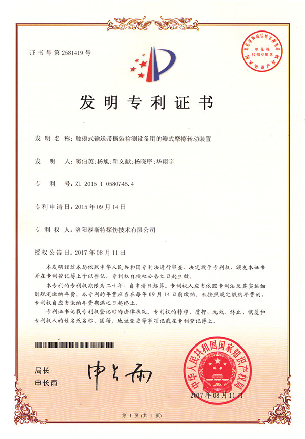 金秋碩果盈滿枝,洛陽泰斯探傷技術有限公司(簡稱TST)喜獲知識產權局頒發(fā)的四項發(fā)明利證書,分別是: