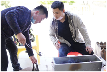 大家展示了不同的燒烤方法和技藝,歡聲笑語隨著縷縷炊煙縈繞在空中,大家吃著自己親手烤出的各種食品,聊著自己在工作和生活中遇到的各種趣事,其樂融融,食物被大家“洗劫一空”!