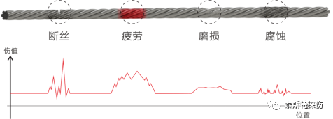 依據(jù)模式識(shí)別軟件判別鋼絲繩內(nèi)、外部疲勞、銹蝕、磨損及斷絲等損傷類型。